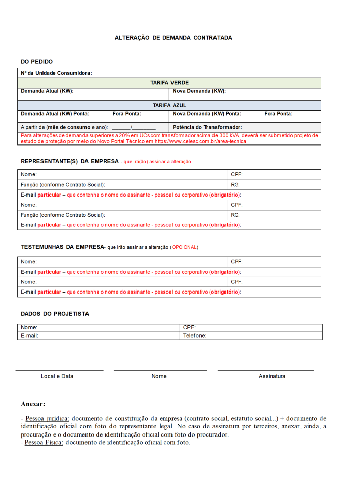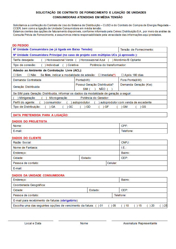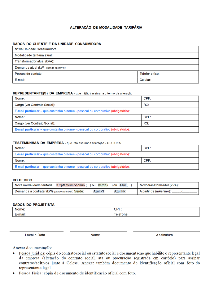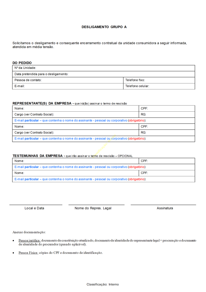 Nesta página, você encontrará os principais formulários utilizados para atendimento de serviços relacionados às unidades consumidoras do Grupo A. Os documentos estão disponíveis para download e preenchimento conforme a necessidade do serviço solicitado.