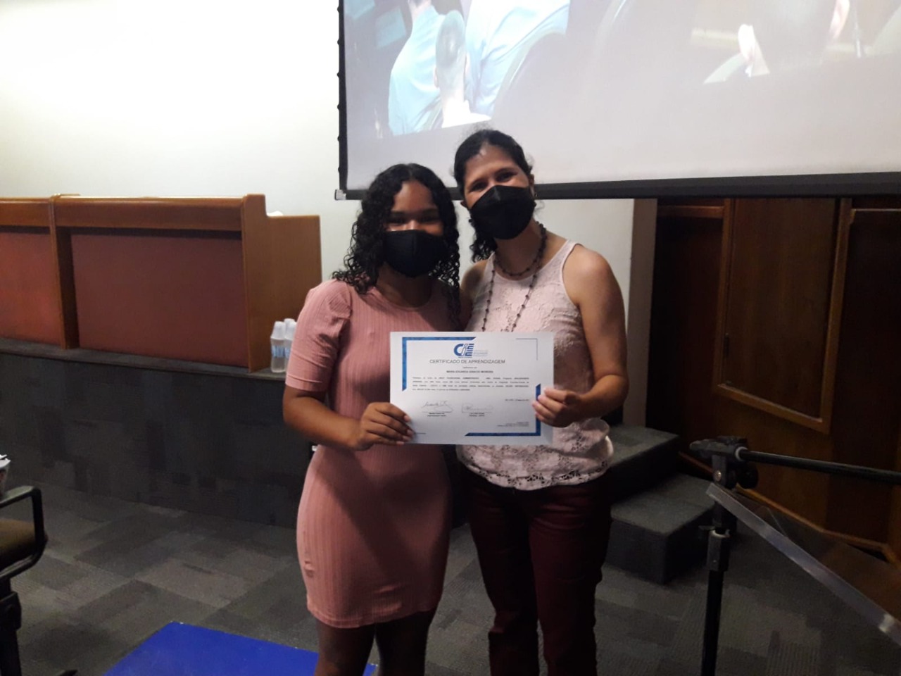 “Para mim, essa experiência foi muito incrível, porque eu acabei enfrentando algumas barreiras, que eram a insegurança, a timidez, o medo, porque esse foi o meu primeiro emprego”, comentou Maria Eduarda Ignácio Moreira, uma das jovens aprendizes que receberam o diploma nesta terça.
